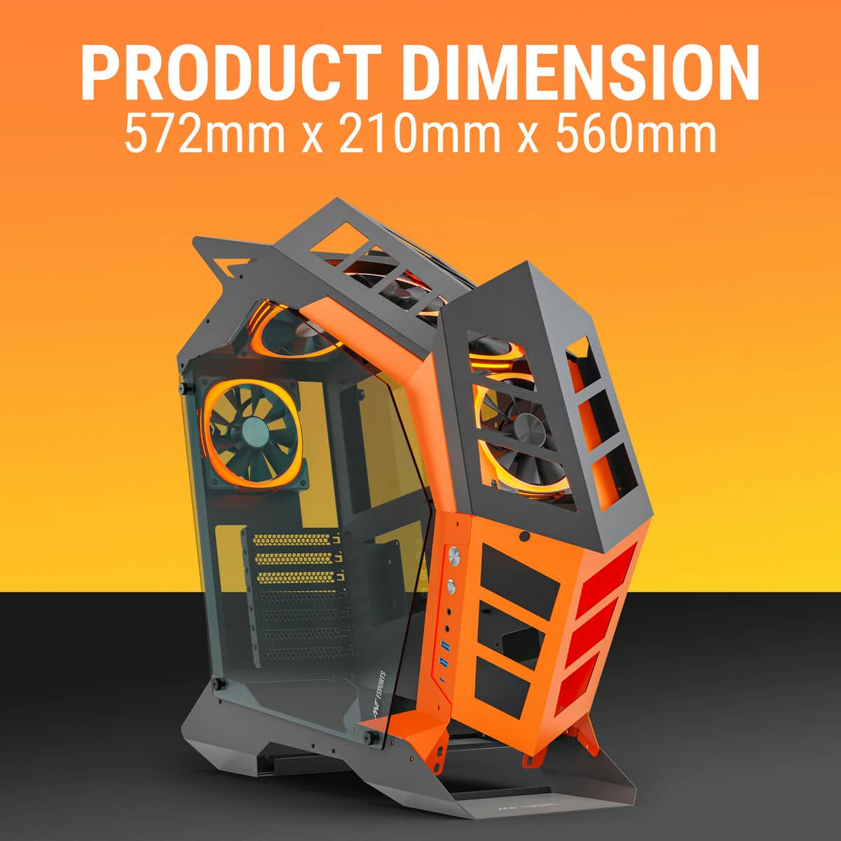 - The product dimensions of 572mm x 210mm x 560mm indicate a spacious and well-proportioned design, providing ample room for high-performance components. The 572mm height and 560mm depth allow compatibility with large GPUs, cooling systems, and multiple storage devices, while the 210mm width ensures sufficient airflow and cable management space. This size makes it ideal for enthusiast builds, offering both functionality and aesthetics.