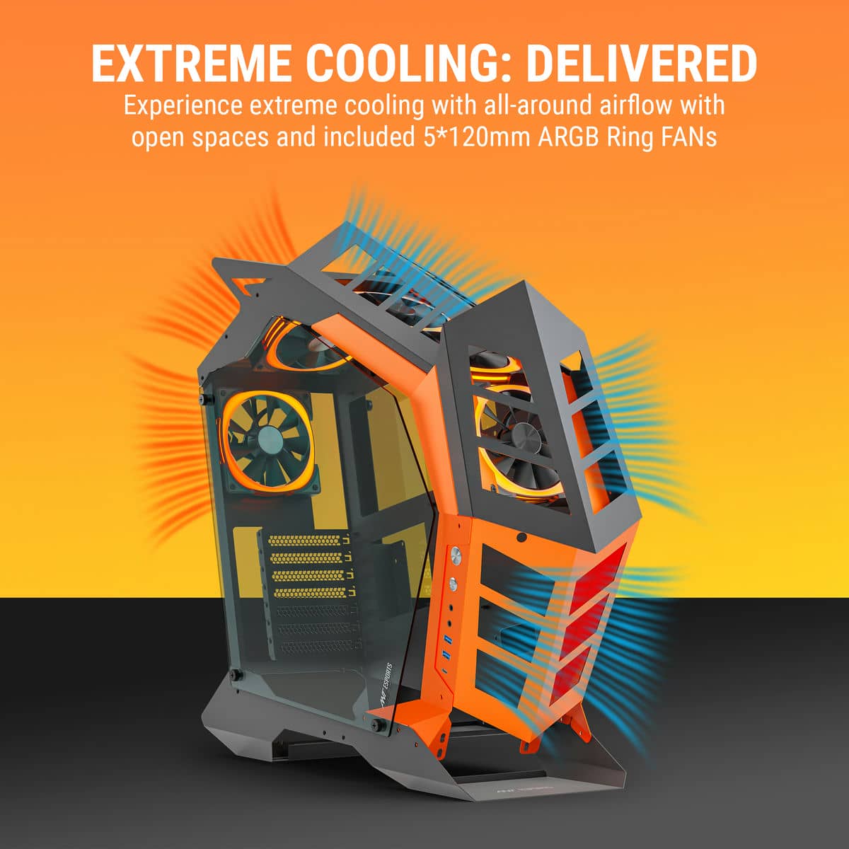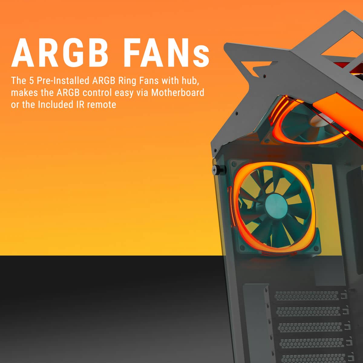 - 5 x 120mm ARGB Ring Fans – The chassis comes with five