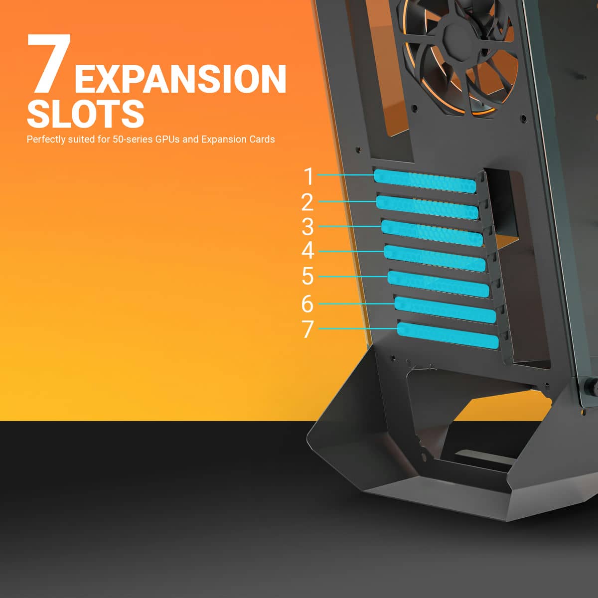 - Expansion slots in a PC case or motherboard provide additional connectivity and upgrade options for users. Specifically designed for 50-series GPUs and expansion cards, these slots ensure compatibility with high-performance graphics cards, storage controllers, sound cards, or network adapters. They offer ample space, proper alignment, and adequate cooling to support powerful components, enhancing system functionality and performance.